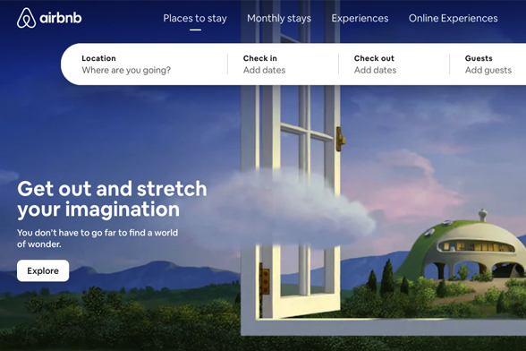 Airbnb landing page examples of microcopy – “Places to stay, Monthly stays, Experiences, Add dates, Add guests, Explore” Airbnb landing page examples - “Stays, Experiences, Adventures, Become a Host, Help, Sign in, Log In” Etsy landing page microcopy example –  “Sign in button call to action, Gifts, Shop Back to School, Everyday finds.” Image: Etsy landing page example -  “Sign-In” button call to action